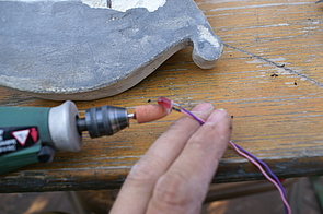 LEDs für die Augen, untere Verdickung abschleifen und Augen-LEDs einsetzen.