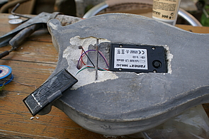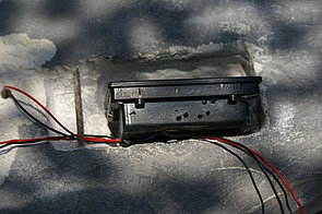 Extra Löcher für die Kabel bohren, Kabel durch die Löcher führen, anlöten und Akkufach bündig einsetzen.